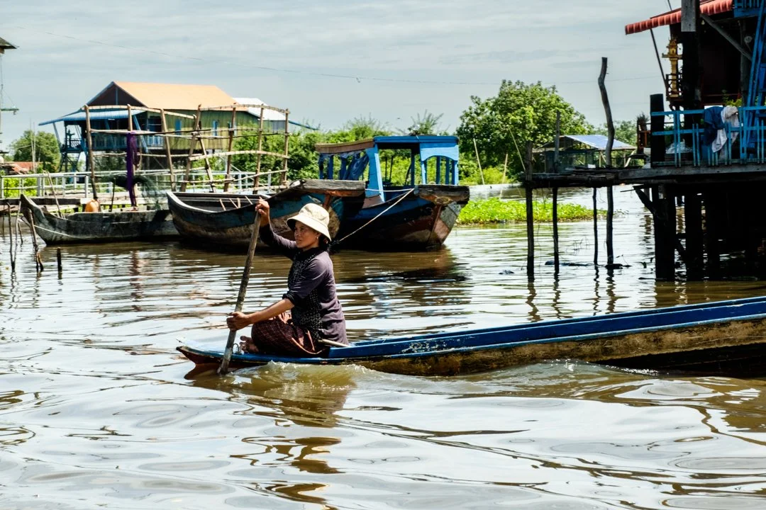 In part of this enormous lake, the mangrove forests spend half the year under water. We were met by a group of unwelcoming women who I felt pretty intimidated by. We got onboard one of the sampans and were rowed through the drowned forests; through the tangled trees, it was strangely eerie but beautifully peaceful.