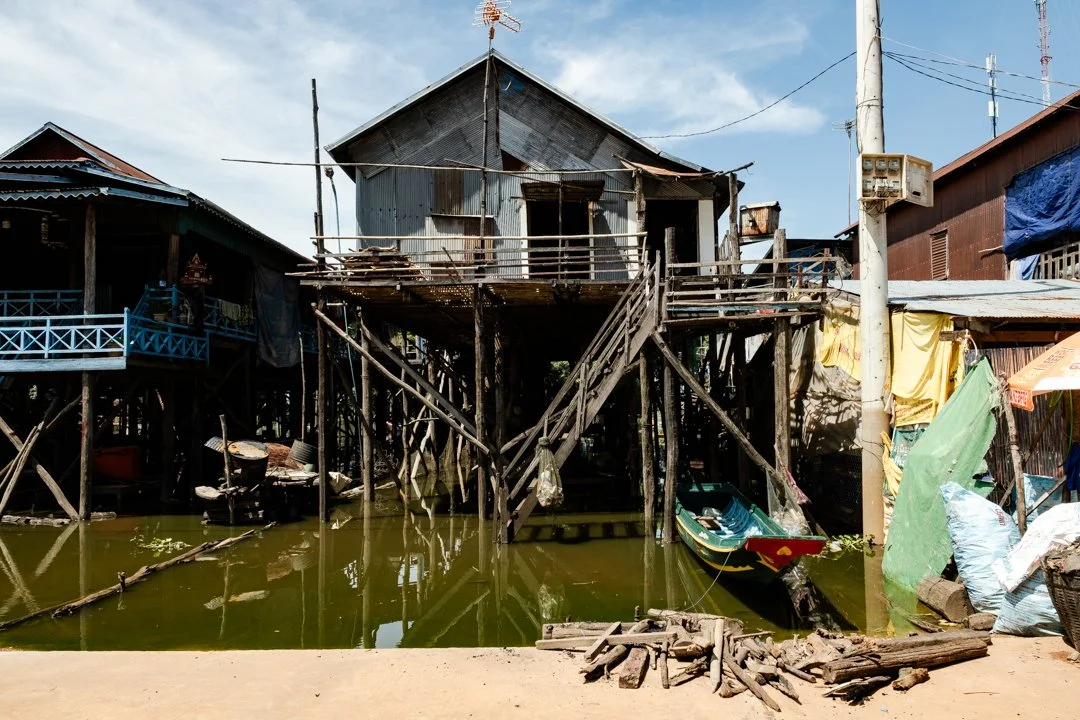 The floating houses of Tonle Sap are not actually floating, the houses are actually built on very tall bamboo stilts around 8 meters high. During the rainy season, the lake rises and covers the stilts, giving the illusion that the homes are floating in the water. People spend their entire lives within these floating communities, moving with the rise and fall of the waters. They depend on subsistence fishing as their main source of income and food.